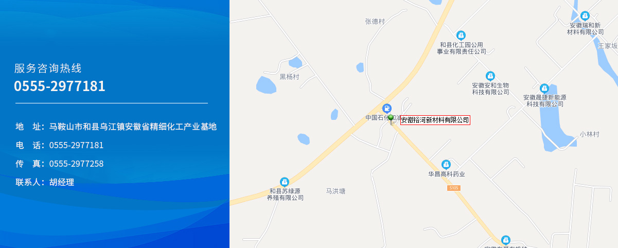 地址:安徽省馬鞍山市和縣烏江鎮(zhèn)安徽省精細化工產(chǎn)業(yè)基地 電話:0555-2977181 手機:187-0551-7353/胡經(jīng)理